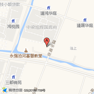 国宾府幼儿园位于振沧路1号(永强沧河基督教堂)教堂西方向140.482米的位置。
