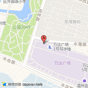 万达广场占地面积约:86259㎡和温州市龙湾区万达一号写字楼华夏银行左手边上二楼相距 ⇄ 0m
