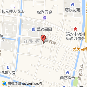 祥湖小区占地面积约:5729㎡和温州市瑞安市锦湖路与虹锦路交叉口南40米相距 ⇄ 10.6983m
