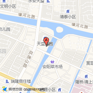 卢艺书法培训位于安康路258弄4栋(安阳菜市场)蔬菜市场东南方向107.093米的位置。