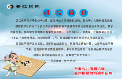 云江棋院(忠义街校区)是浙江省温州市下的培训机构,评分等级:培训机构|4.2,所属商圈:瑞安市人民医院万松院区,瑞安市玉海实验中学(诒善校区),玉海楼,港瑞·新玉海
