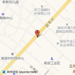 新前文化礼堂位于塘下镇前进村进南路90号(村民中心)乡镇以下级政府及事业单位东方向2.9669米的位置。