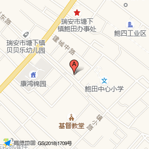 鲍六智慧幼儿园位于塘下镇鲍田鲍五村建城中路11号(鲍田办事处)(友鸿金属材料公司)公司北方向256.786米的位置。