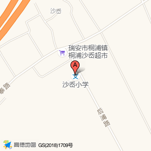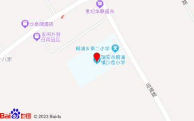 沙岙小学占地面积约:6675㎡和温州市瑞安市后浦路相距 ⇄ 0m