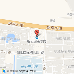瑞安城市学院位于瑞祥新区文庄路178号(朝阳国际幼儿园旁边)(滋缘面馆(华鸿瑞安华府店))中餐厅东南方向189.821米的位置。