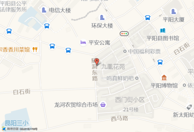 西门街小区占地面积约:48091㎡和温州市平阳县九凰花苑西北门西南90米相距 ⇄ 0m