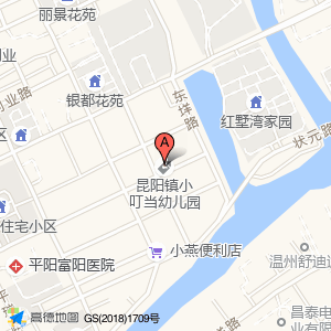 昆阳镇小叮当幼儿园位于温洲平阳昆阳镇平瑞路(温州富园住宅小区)住宅小区西方向325.427米的位置。