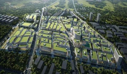 沿侨贸大道向西南行驶1.6千米右转