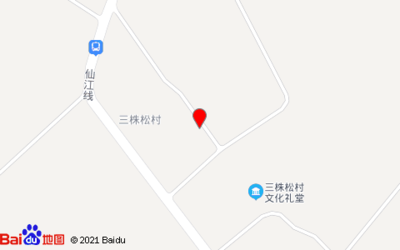 三株松村文化礼堂位于江曹路与仙江线交叉口东南20米(龟山下村)村庄级地名|商务住宅相关东南方向613.44米的位置。