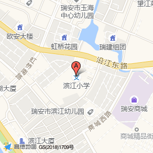 滨江小学位于玉海街道虹桥南路中银公寓AB座1-3层(肯德基旁)(苏宁易购(温州瑞安虹桥南路店))苏宁西方向195.057米的位置。