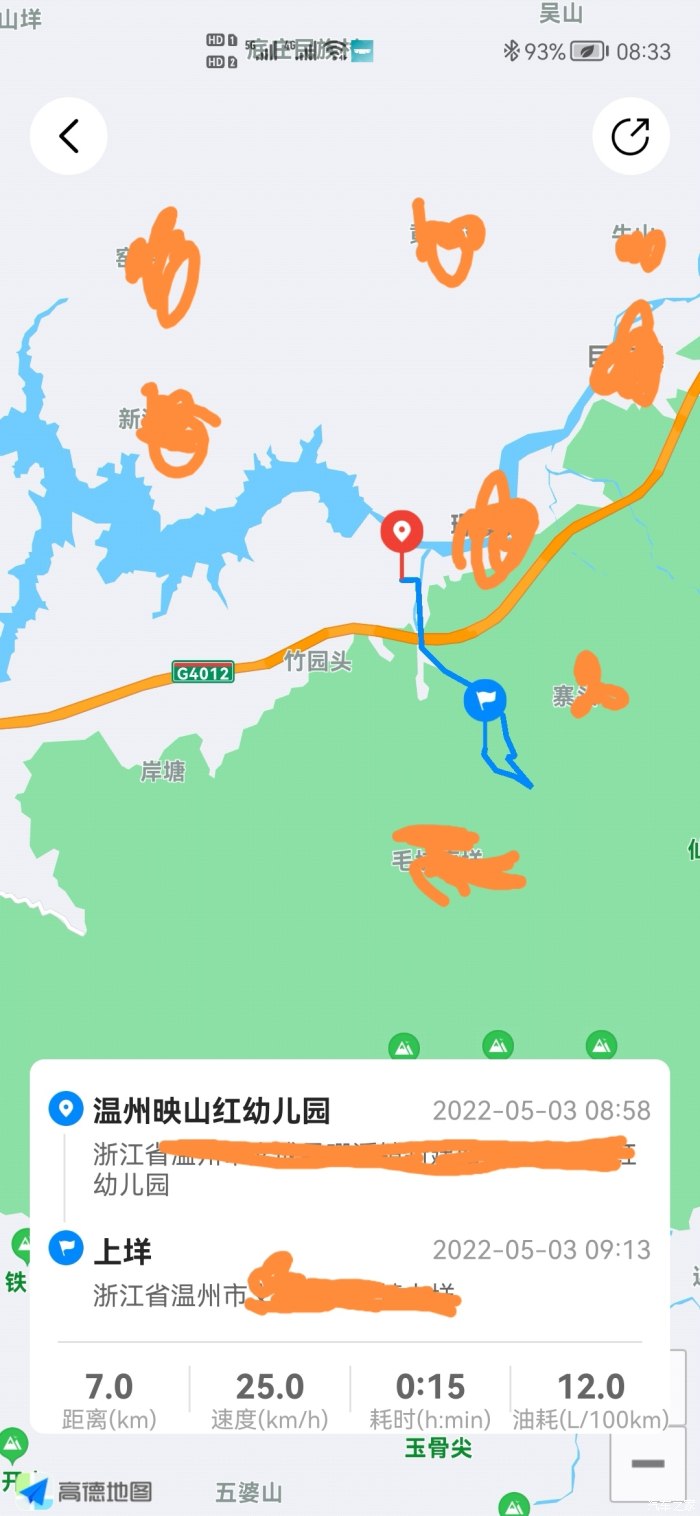 ⓞ沿文成县飞云江绿道向西骑行1843米向右前方行驶