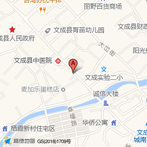 文成县中医院占地面积约:3485㎡和浙江省温州市文成县大峃镇建设路文成供销社商厦(建设路73号)相距 ⇄ 44.2332m