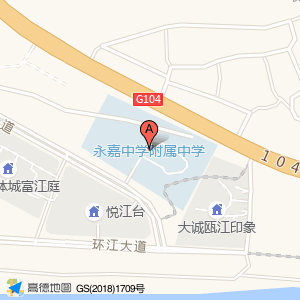永嘉中学附属中学位于中心大道与中村路交叉口东南120米(悦江台)住宅小区西南方向172.169米的位置。