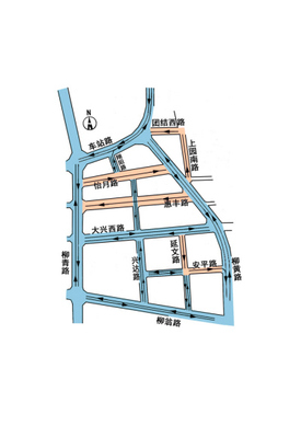 ➤沿柳翁路向东步行536米向右前方行走