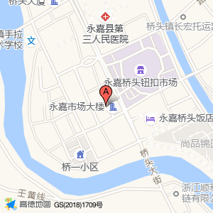 永嘉桥头钮扣市场占地面积约:24081㎡和浙江省温州市永嘉县桥头镇商贸城住宅区永嘉市场大楼(乌牛街道新城路4号)相距 ⇄ 50.534m