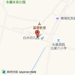 白水幼儿园占地面积约:645㎡和浙江省温州市永嘉县瓯北街道群星英语教育白水幼儿园(瓯北街道白水村治安联防队附近)相距 ⇄ 26.2732m