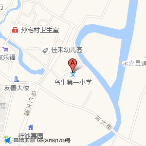 乌牛第一小学位于永嘉县(孙宅村)村庄级地名西北方向246.698米的位置。