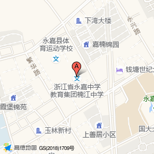 浙江省永嘉中学教育集团楠江中学位于县前路152号速8酒店旁(永嘉恒升村镇银行(上塘支农服务点))银行南方向101.493米的位置。