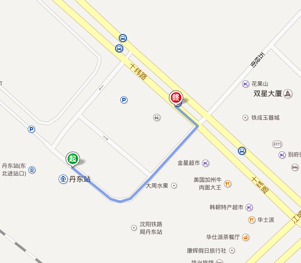 ➤沿大十线向东北步行674米向右前方行走