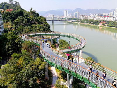 ⓞ沿文成县飞云江绿道向西骑行1843米向右前方行驶