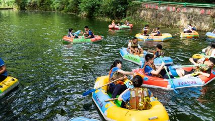 ☸坐轮船来青龙湖风景区停车点在附近港口码头:温州楠溪江石桅岩-渡口|距离:12838m (浙江省温州市永嘉县石桅岩景区内)下船