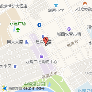 停车场(嘉康街)位于上塘中心城区南城街道永兴路388号(万潮广场购物中心)购物中心西南方向73.6954米的位置。
