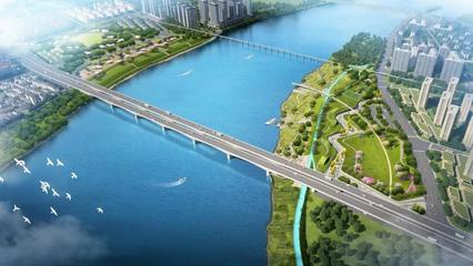 沿桥头互通途径新城大道向北行驶846米向左前方行驶