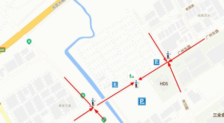 ➤沿104国道向西步行11米向左前方行走