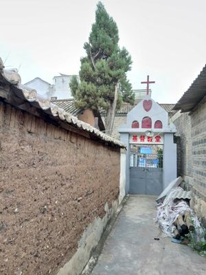 大浃基督教堂停车场位于京福线辅路与工业路一交叉口西120米(沁春园)住宅小区北方向267.723米的位置。