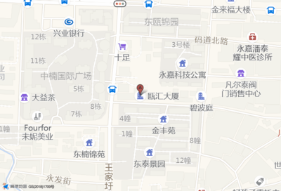 码道大厦停车场位于双塔路中楠广场1层(浦发银行(温州永嘉支行))上海浦东发展银行西方向190.919米的位置。