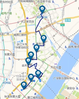 沿钱江路向东北行驶556米右转