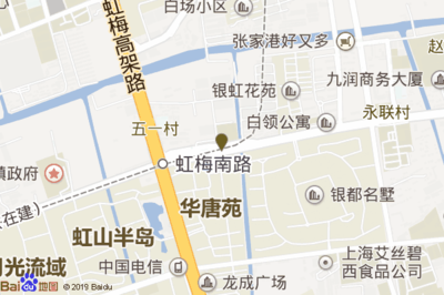 银虹大厦(公交站)位于新凯路8-009号附近(虹桥商贸城)普通商场西方向64.5792米的位置。