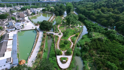 ➤沿竹沿路向北步行895米向左前方行走