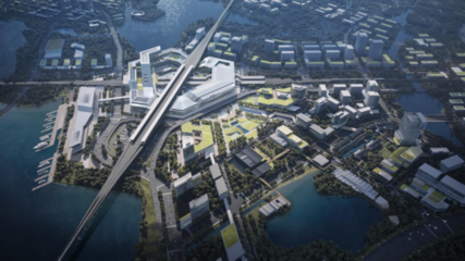 沿机场大道向东南行驶544米向右前方行驶