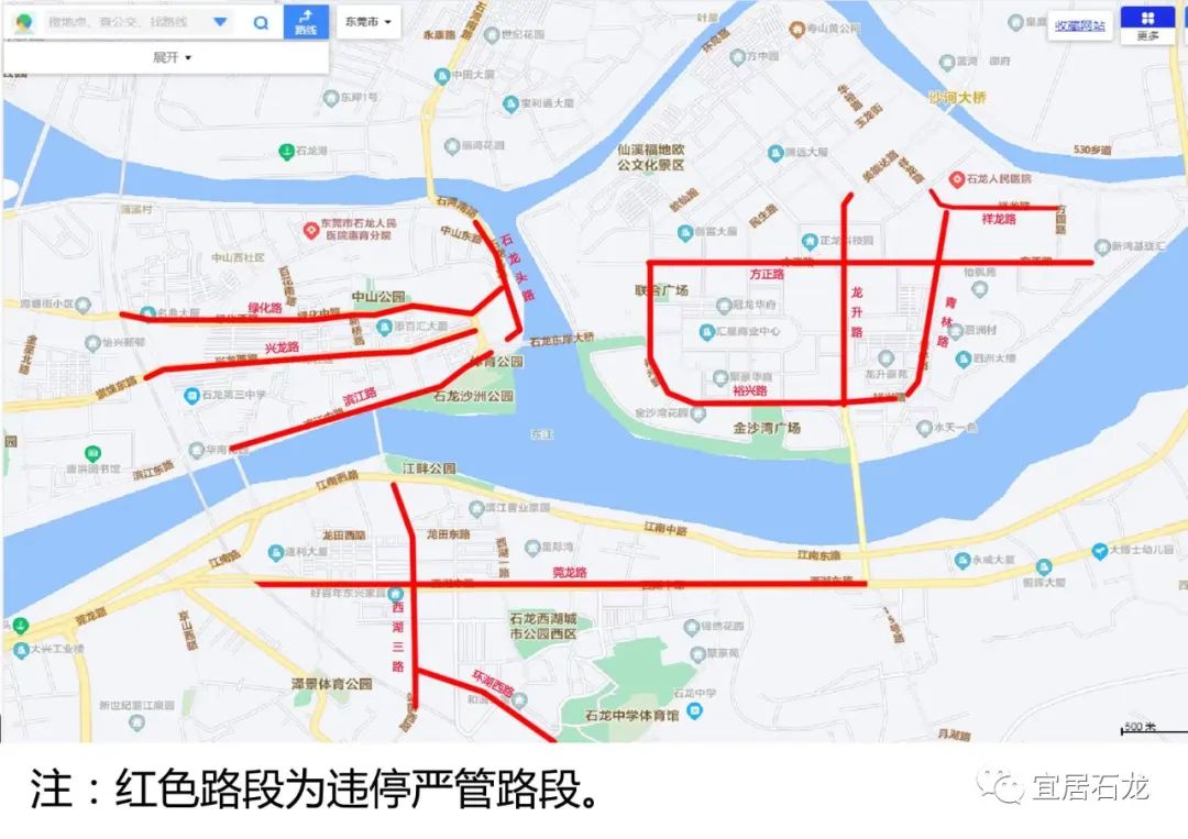 石龙头二站(公交站)位于溪滨路与樟树路交叉口西260米(卓越人家)中餐厅东南方向641.652米的位置。