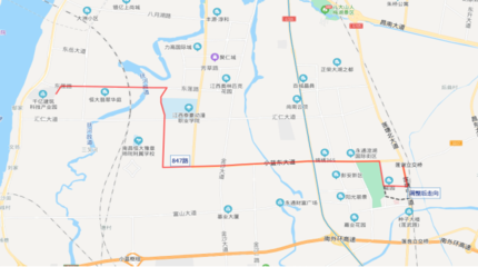 ➤沿104国道向西北步行439米直行
