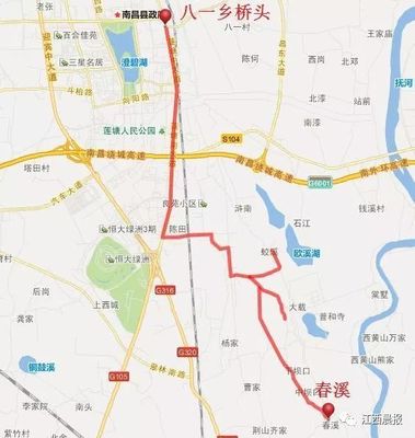 ➤沿104国道向西步行11米向左前方行走