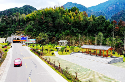 沿雁楠公路途径上日川桥向东北行驶4.4千米直行进入隧道