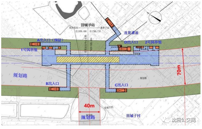 ➤沿虹芙隧道向北步行1164米直行