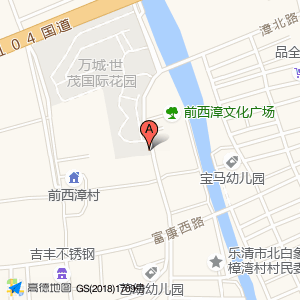 万城世贸国际花园二期停车场(出入口)位于北白象镇前西漳文化广场内(乐清市北白象镇爱绿幼儿园)幼儿园东北方向40.9668米的位置。