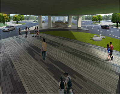 ⓞ沿过境路辅路向北骑行231米左转