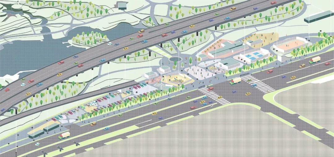 ⓞ沿过境路辅路向北骑行231米左转
