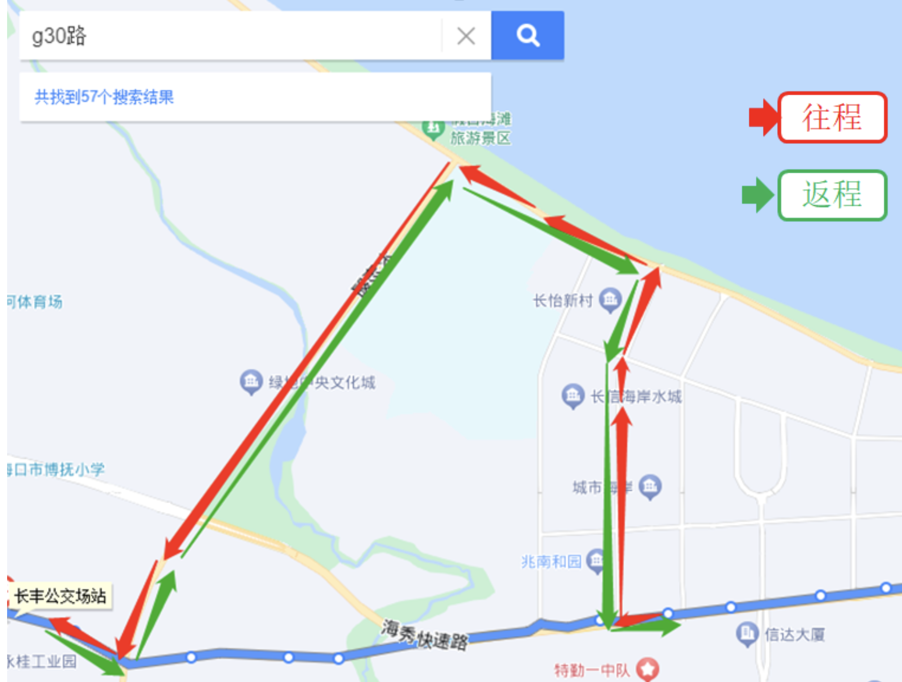 沿滨海大道向南行驶811米靠左进入匝道