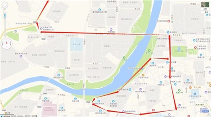 ⓞ沿大连路向西骑行511米向右前方行驶