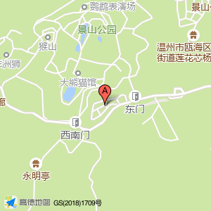 景山公园占地面积约:2567039㎡和温州市瓯海区温州动物园内(南侧)相距 ⇄ 0m