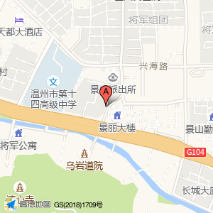停车场(景丽大楼西南)位于过境公路1630号(温州市公安局交通警察支队四大队)交通管理机构东方向115.244米的位置。