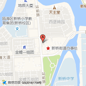 新桥街道办事处占地面积约:4084㎡和温州市瓯海区站前路与靖宁街交叉口东南40米相距 ⇄ 17.1369m