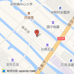 停车场位于宋桥镇前街95号(镇前饭店)中餐厅西方向41.3998米的位置。
