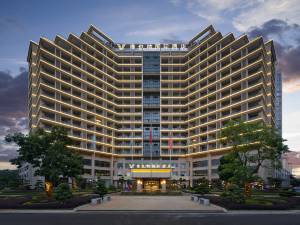 维也纳国际酒店(温州洞头店)地面停车点位于海滨大道208号海悦城嘉园正大门对面(蓝色海湾科普体验馆)培训机构西北方向239.43米的位置。