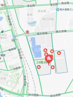 ➤沿滨河路向东南步行106米直行